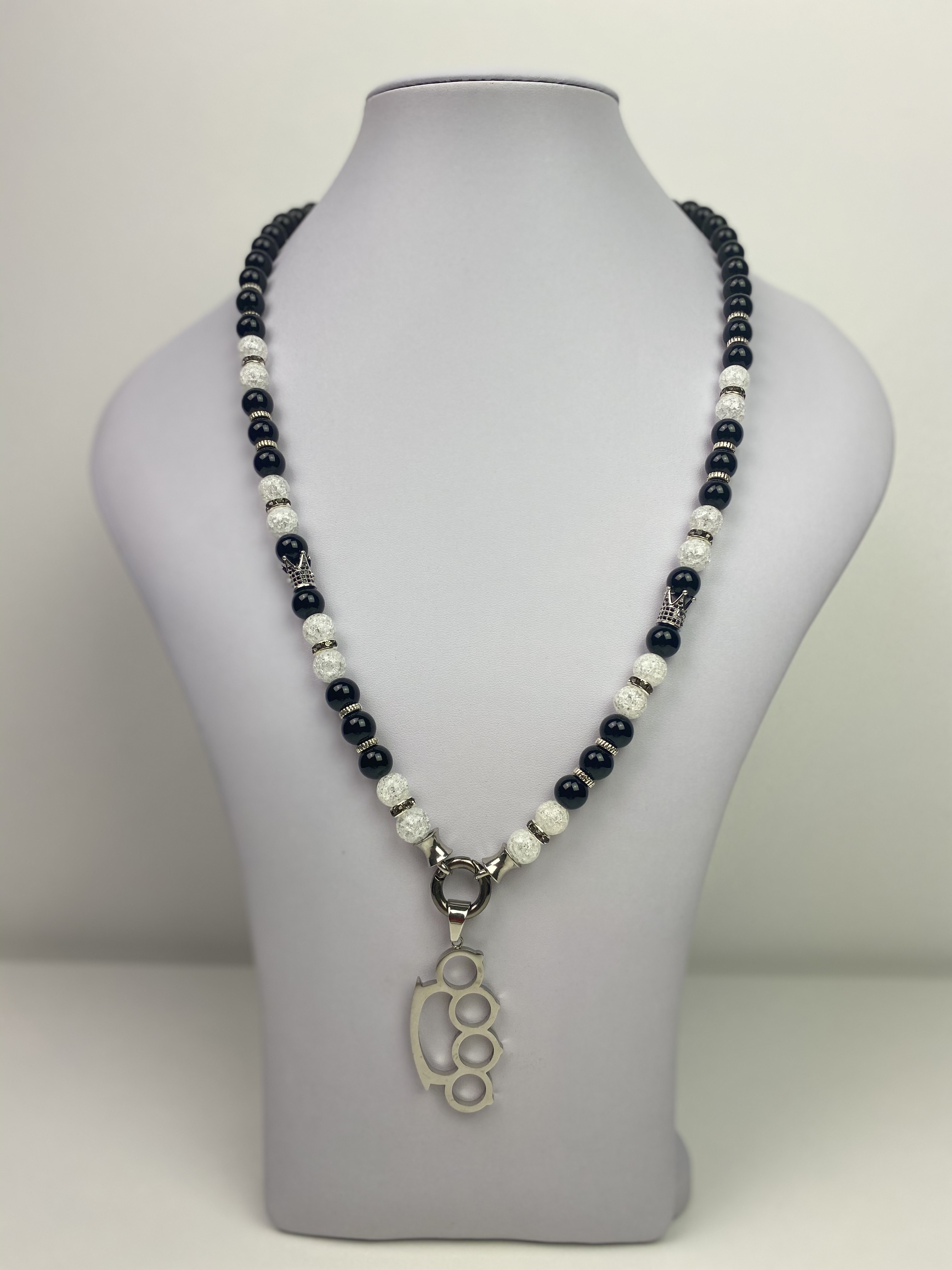 Ortskindkette mit matten Onyxsteinen sowie einem 1%anhänger